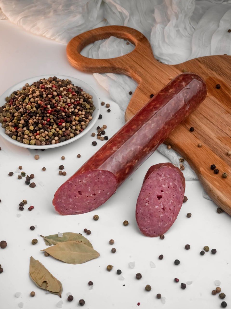 Классическая полукопчёная говяжья колбаса с мягким ароматом специй.